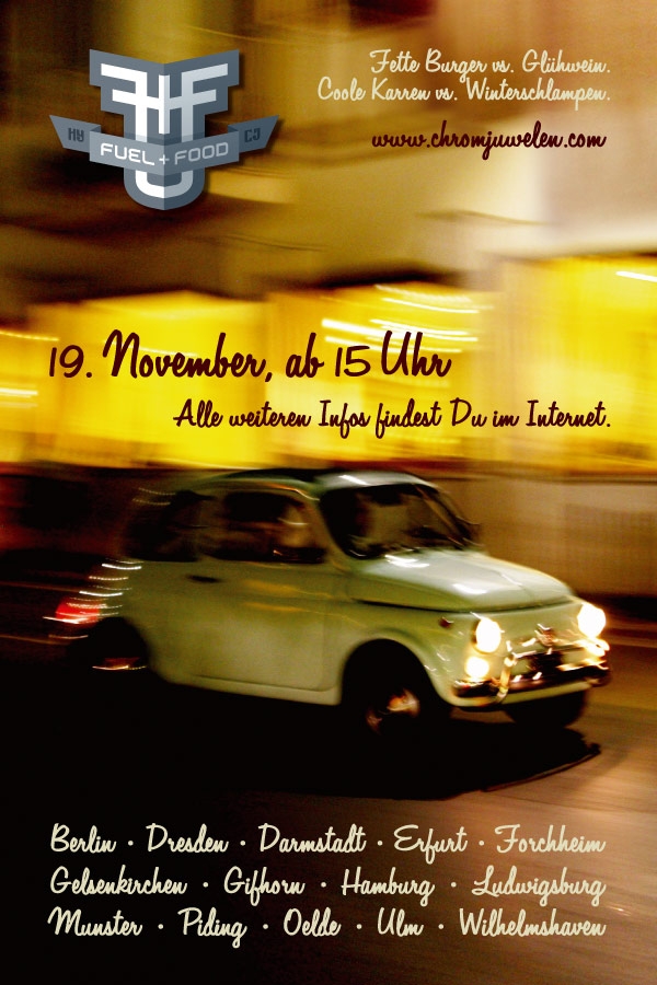 Unter dem Motto „Fuel + Food“ finden am 19. November 2006 in 14 deutschen Städten bei Burger King Treffen der besonderen Art statt. Zu Beginn der Winterzeit heißt es dann „Fette Burger vs. Glühwein“.